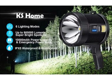 Super Bright Handheld Spotlight, Ενσωματωμένος φακός προβολέα 900000 Lumen με τσιπ P90 LED, σταθερό και έντονο φως. Η απόσταση ακτινοβολίας είναι περίπου 2625 πόδια (800 μέτρα). Υψηλή φωτεινότητα, μεγάλες αποστάσεις