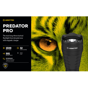 Predator Pro — the most long-throw tactical flashlight from Armytek now with magnetic charger Model with direct narrow beam of impressive throw for tactical tasks and for hunting. Clear central...