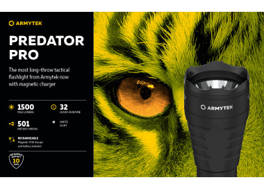 Predator Pro — the most long-throw tactical flashlight from Armytek now with magnetic charger