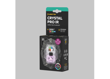 A model from the updated lineup of compact multi flashlights. Crystal Pro IR is a flashlight with a universal set of light colors (white, red, green, blue), which is also equipped with an LED for infrared light. This combination allows using the flashlight not only in everyday activities, but also when solving specialized tasks.